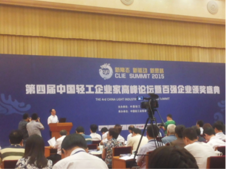 612日,由中國(guó)輕工業(yè)聯(lián)合會(huì)主辦的“第四屆中國(guó)輕工企業(yè)家高峰論壇暨輕工百?gòu)?qiáng)企業(yè)頒獎(jiǎng)盛典”在北京京西賓館舉行。本屆論壇以“新思路、新驅(qū)動(dòng)、新常態(tài)”為主題,來(lái)自政府部門、協(xié)會(huì)、媒體、企業(yè)及各地方輕工業(yè)組織共500余人參加了會(huì)議,新浪網(wǎng)等網(wǎng)絡(luò)媒體進(jìn)行了全程報(bào)道。