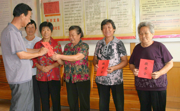 魯洲集團每月為駐地老人發(fā)放生活補助金